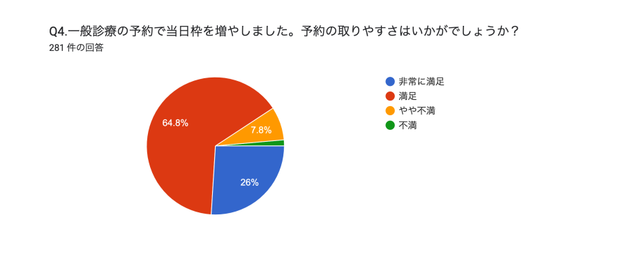 この度の患者様アンケートでは、温かいお声や貴重なご意見を多数お寄せいただき、誠にありがとうございました。