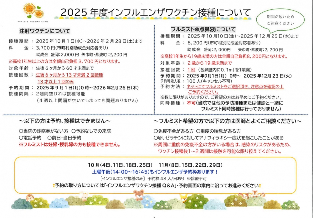 詳しくは下記の「2025年度インフルエンザワクチン接種について」をご覧ください![]()
